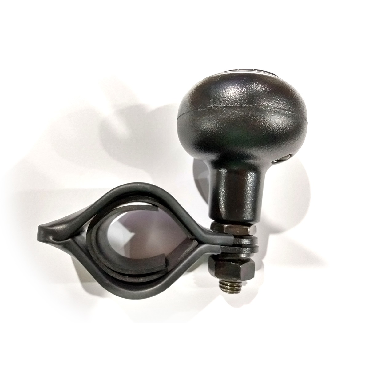 BOLA MANOPLA DE VOLANTE UNIVERSAL MODELO GIRATORIO PRETA COM ARO PRATA (USADA PARA PESSOAS COM PCD)