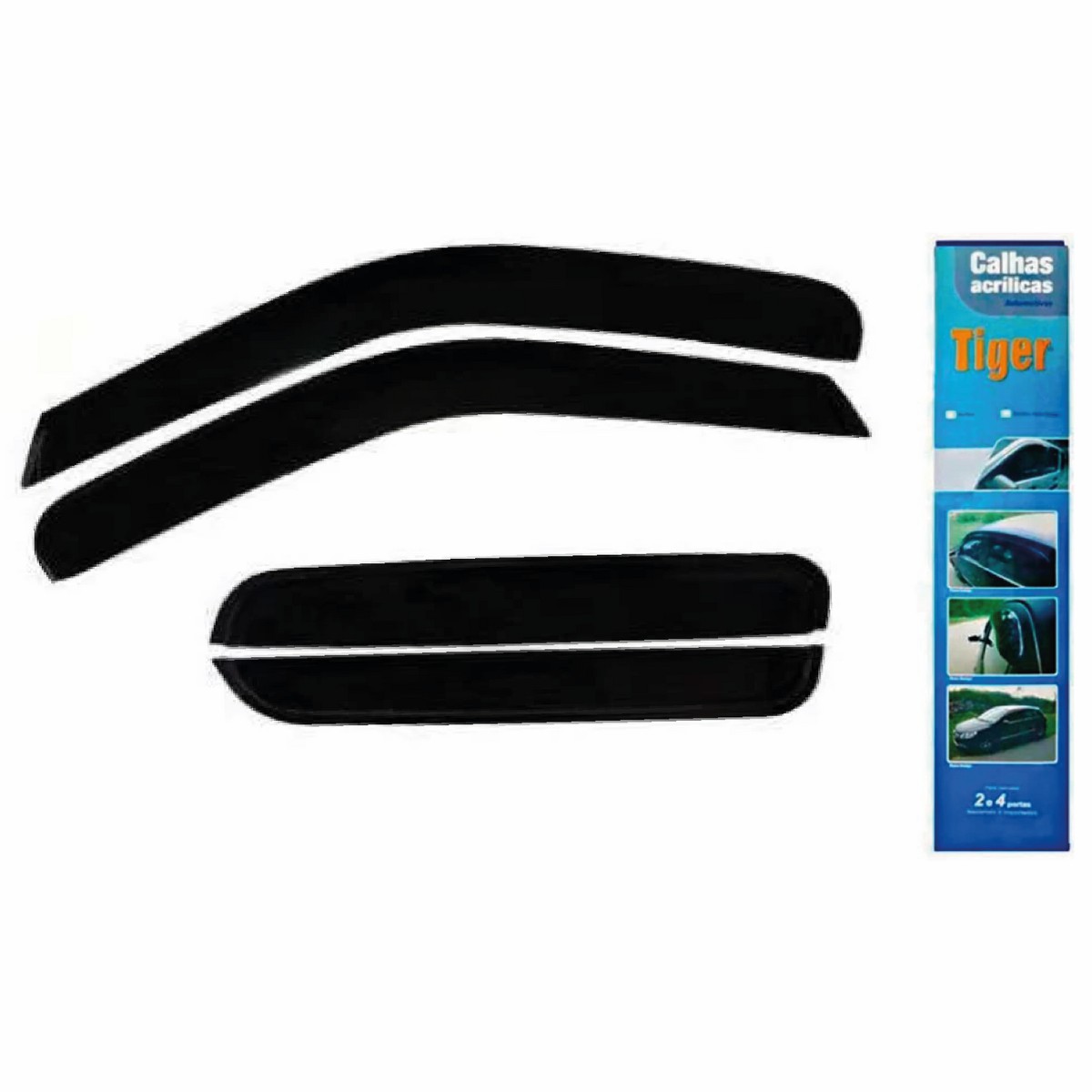CALHA DE CHUVA, TAMBEM CONHECIDA COMO DEFLETOR, GARANTE UM CONFORTO AOS PASSAGEIROS, PRINCIPALMENTE EM DIAS CHUVOSOS, ONDE PERMITE A ENTRADA DE AR EXTERNO, EVITANDO O EMBACAMENTO DOS VIDROS SEM ENTRADA DE AGUA NO INTERIOR DO CARRO. PRODUTO DE FACIL INSTALACAO, ACOMPANHA FITA DUPLA FACE 3M.