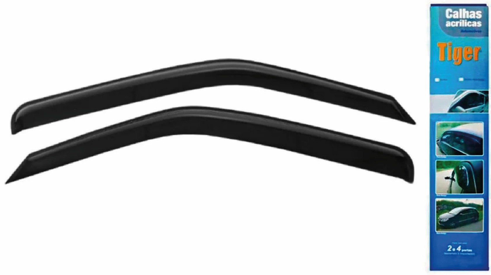 Calha de Chuva, tambem conhecida como defletor, garante um conforto aos passageiros, principalmente em dias chuvosos, onde permite a entrada de ar externo, evitando o embacamento dos vidros sem entrada de agua no interior do carro. Produto de facil instalacao, acompanha fita dupla face 3M.