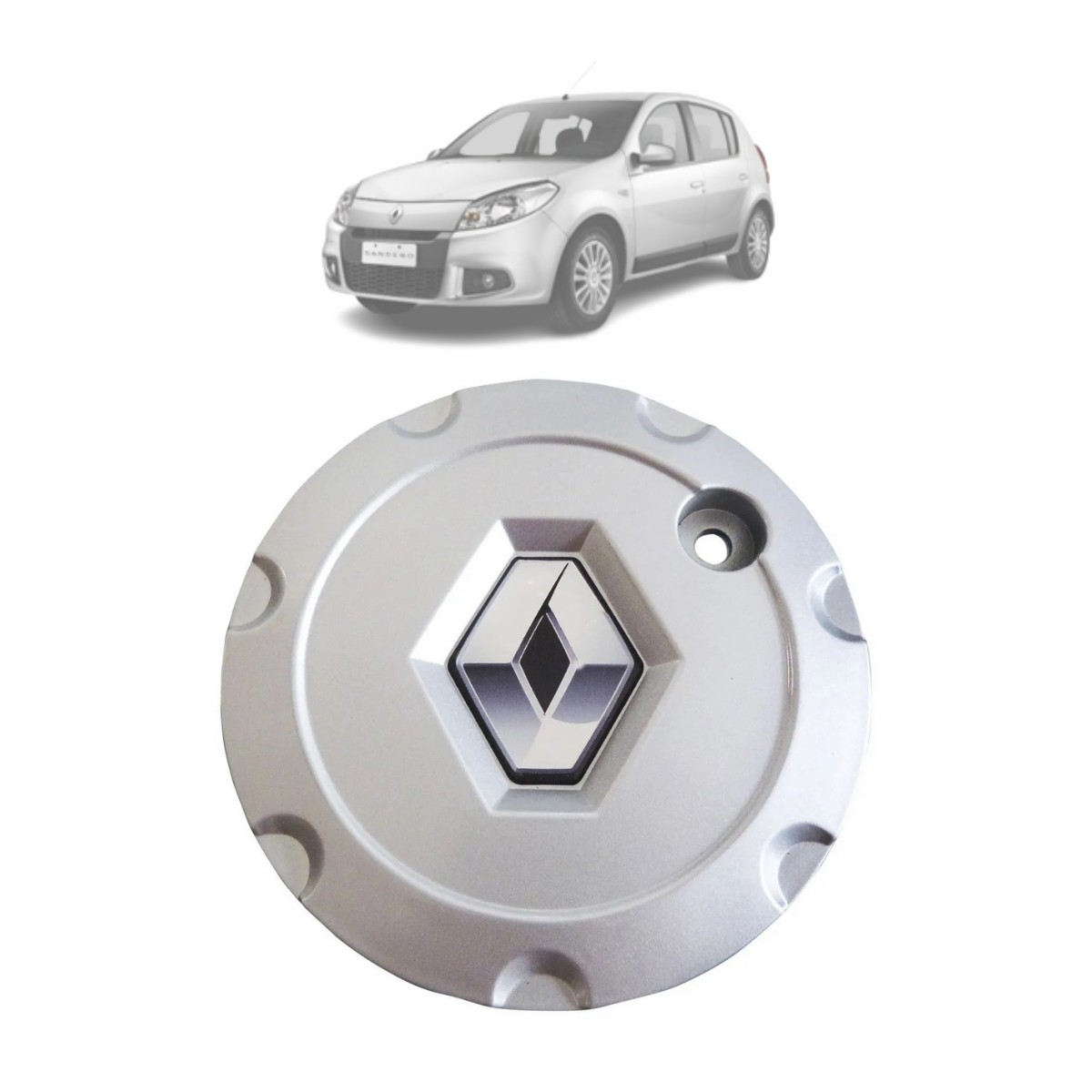 CALOTA CENTRO RODA SANDERO CINZA/CROMA