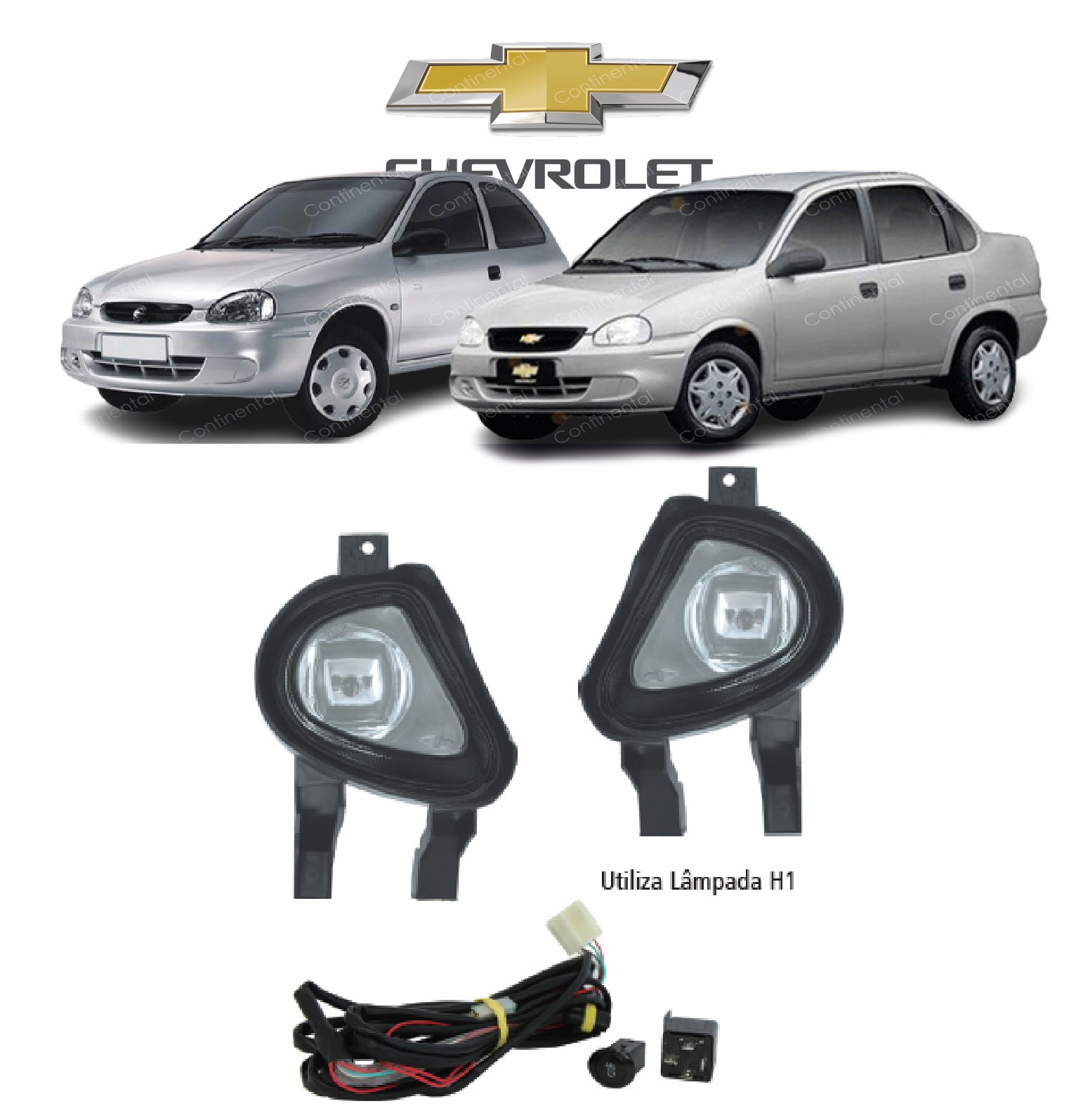 CORSA 2000 A 2002 /CLASSIC 2003 A 2010 (FAROL AUXILIAR/CHICOTE/LAMPADA/RELE/BOTAO UNIVERSAL QUADRADO)