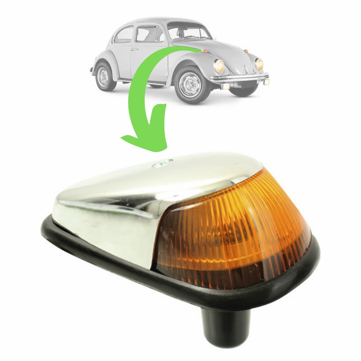 FUSCA 1971 EM DIANTE COMPLETA (CAPA CROMADA DE PLASTICO) AMBAR LADO DIREITO/ESQUERDO LENTE PLASTICA COM SOQUETE DA LANTERNA DE PLASTICO (SORRISO LARGO)