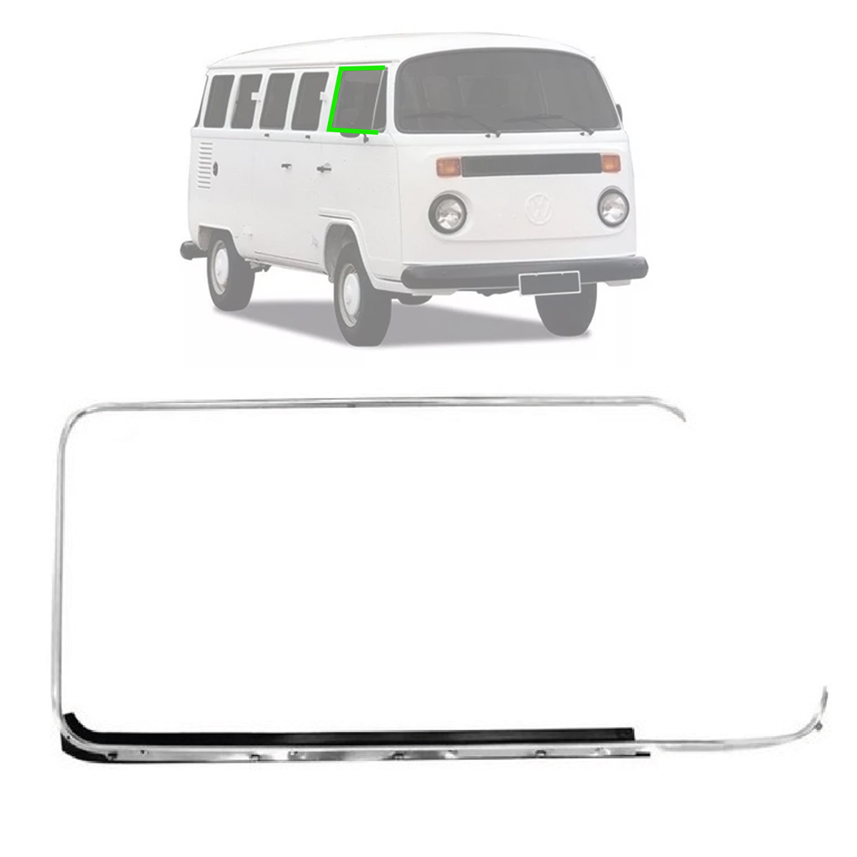 PESTANA EXTERNA DIANTEIRA KOMBI 1976 ATE 2005 LADO DIREITO (FRISO CROMADO COM BORRACHA) (MODELO PARALELO)