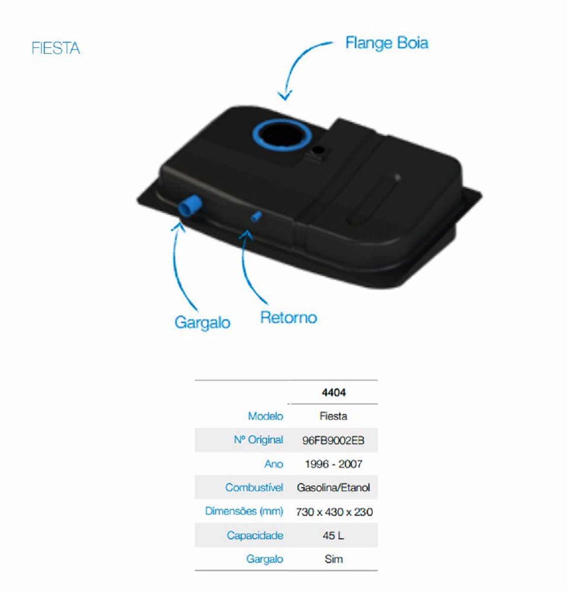 Este tanque foi desenvolvido sob medida para: FIESTA 1996 ate 2007 MODELO STREET.