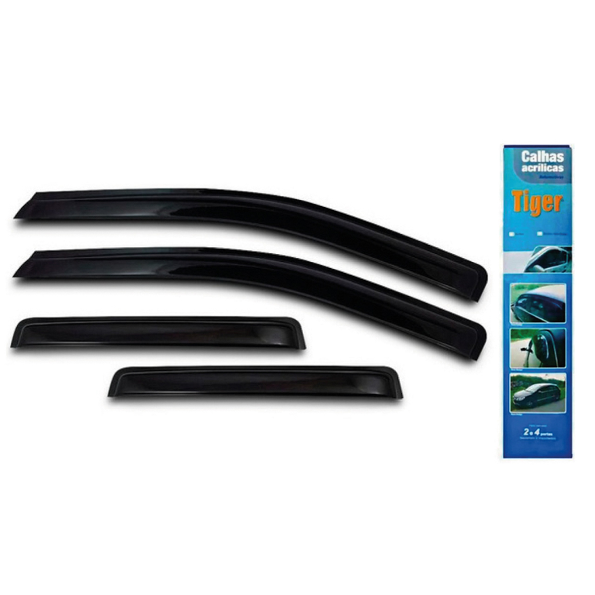Calha de Chuva, tambem conhecida como defletor, garante um conforto aos passageiros, principalmente em dias chuvosos, onde permite a entrada de ar externo, evitando o embacamento dos vidros sem entrada de agua no interior do carro. Produto de facil instalacao, acompanha fita dupla face 3M.
