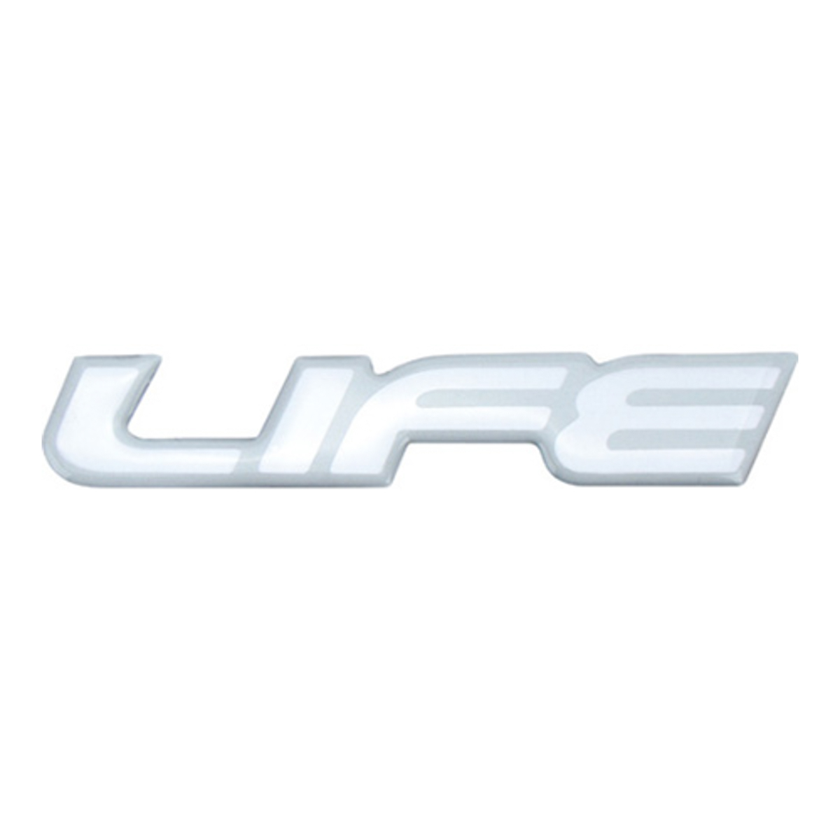 LETREIRO ”LIFE” TRANSPARENTE COM BORDA PRATA RESINADO LINHA CHEVROLET
