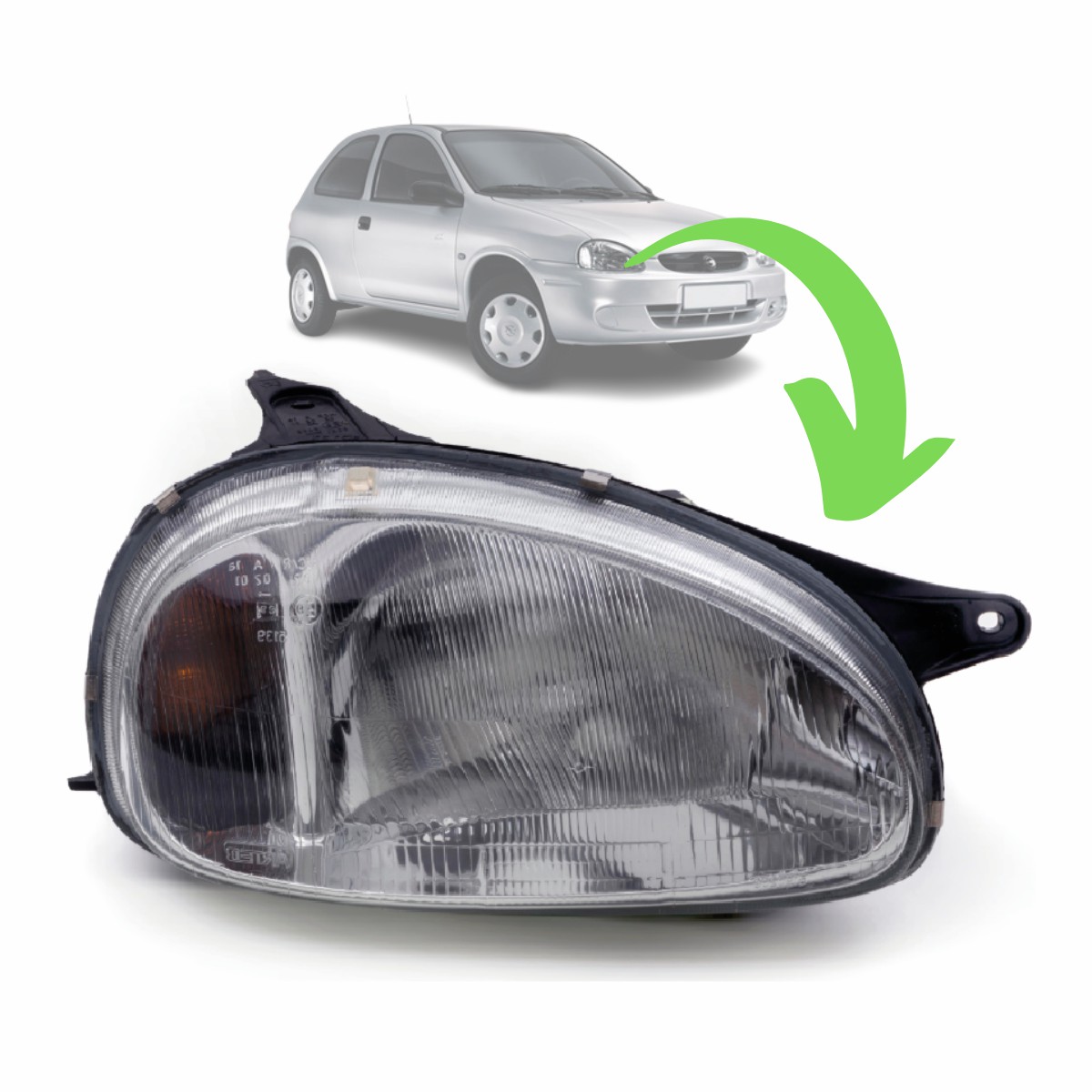 CORSA 1994 A 1999 PISCA AMBAR/LENTE RAIADA/CARCACA PRETA LADO DIREITO