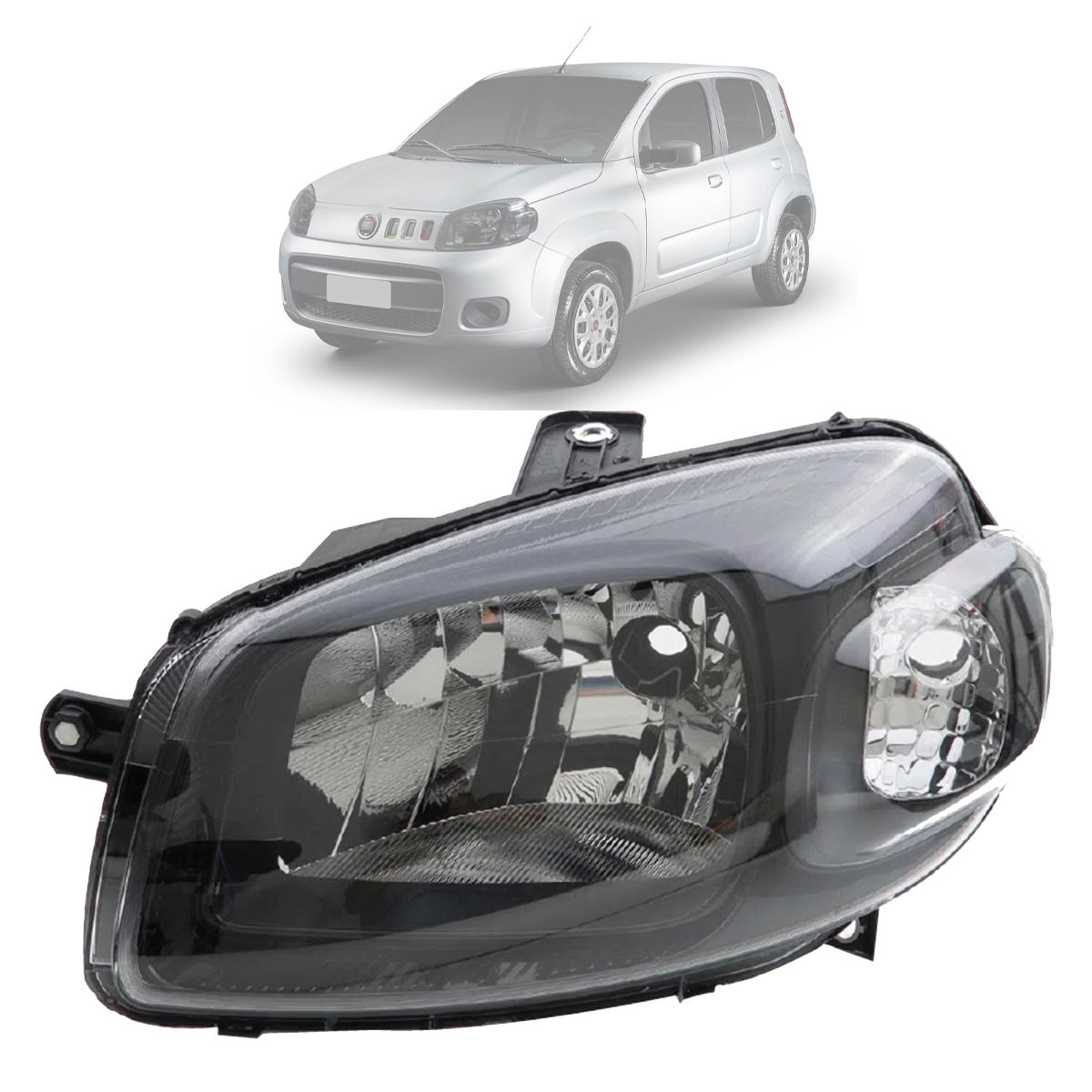 UNO VIVACE 2015 EM DIANTE /FIORINO/PEUGEOT PARTNER 2023 EM DIANTE MASCARA NEGRA COM FOCO CROMADO E MOLDURA PRETA LADO ESQUERDO