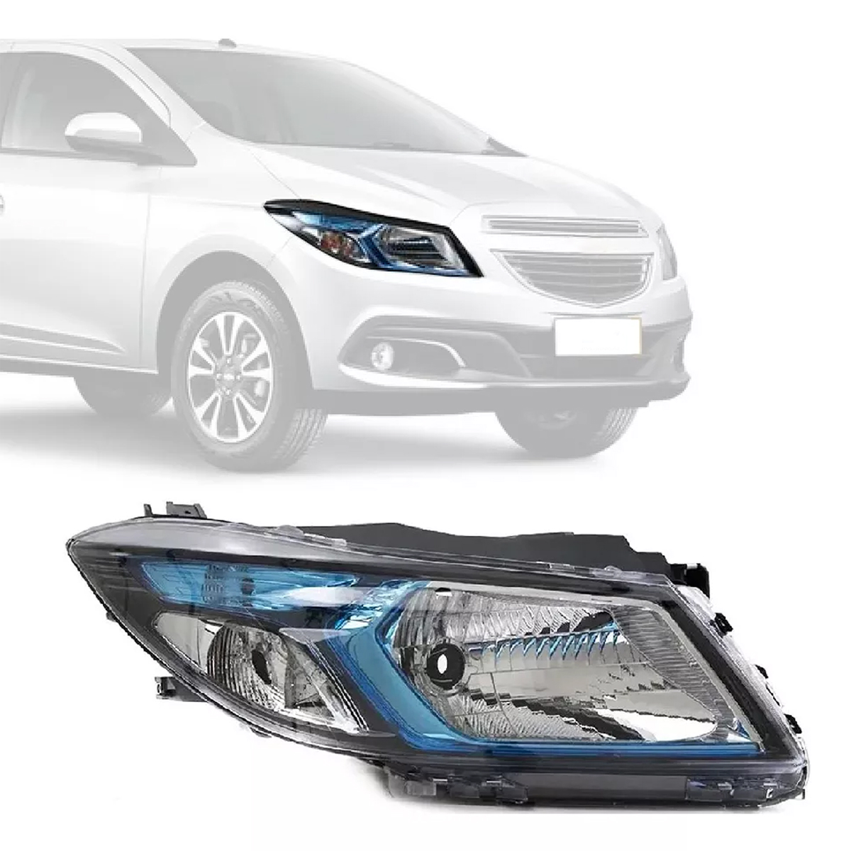 ONIX/PRISMA 2012 A 2016 MASCARA NEGRA COM MOLDURA AZUL LADO DIREITO