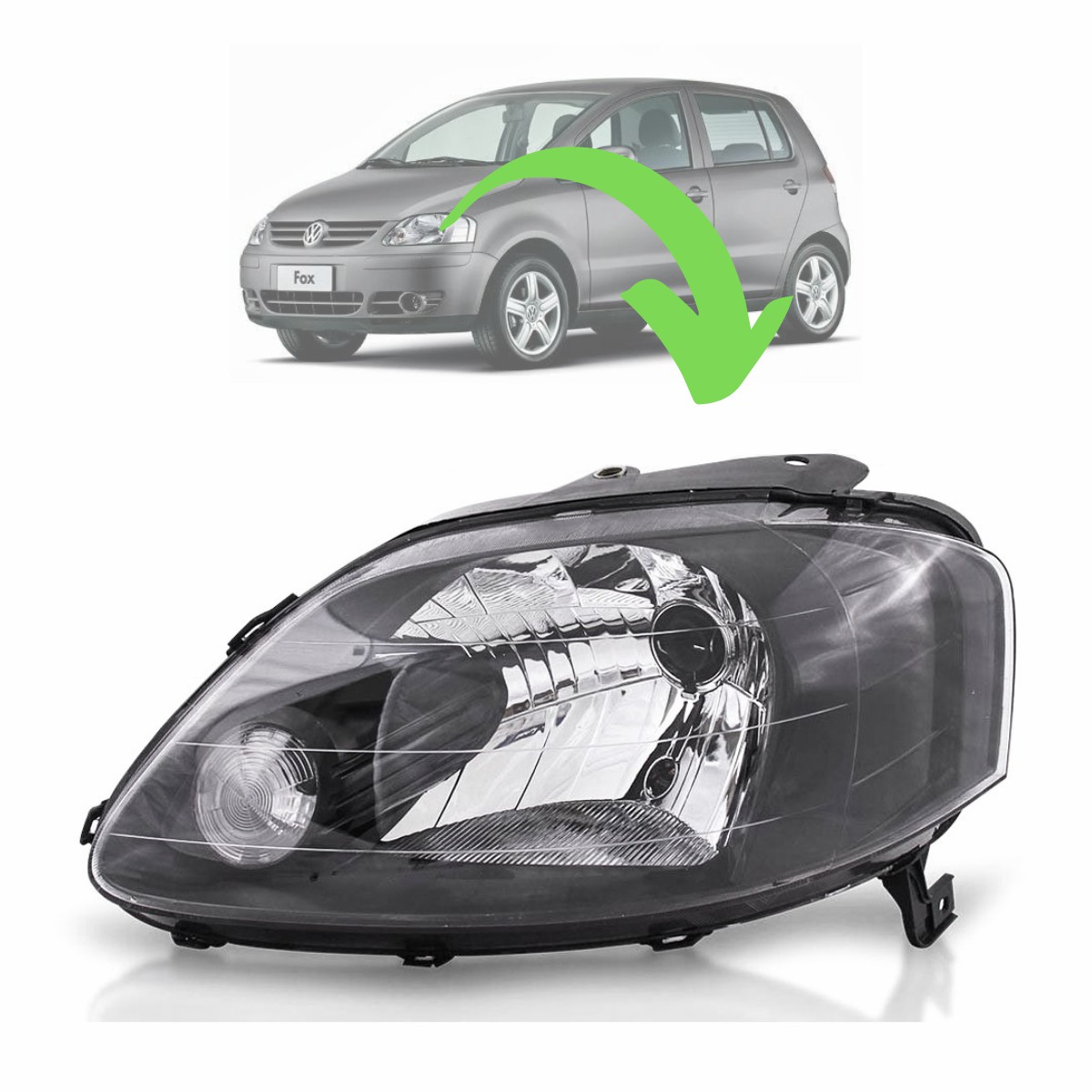 FOX/CROSSFOX/SPACEFOX 2003 A 2009 SIMPLES MASCARA NEGRA LADO ESQUERDO (MODELO ARTEB-FAROLETE ABAIXO DA LAMPADA H4) (APLICAVEL NO CARRO COM OU SEM REGULAGEM ELETRICA DO FAROL)