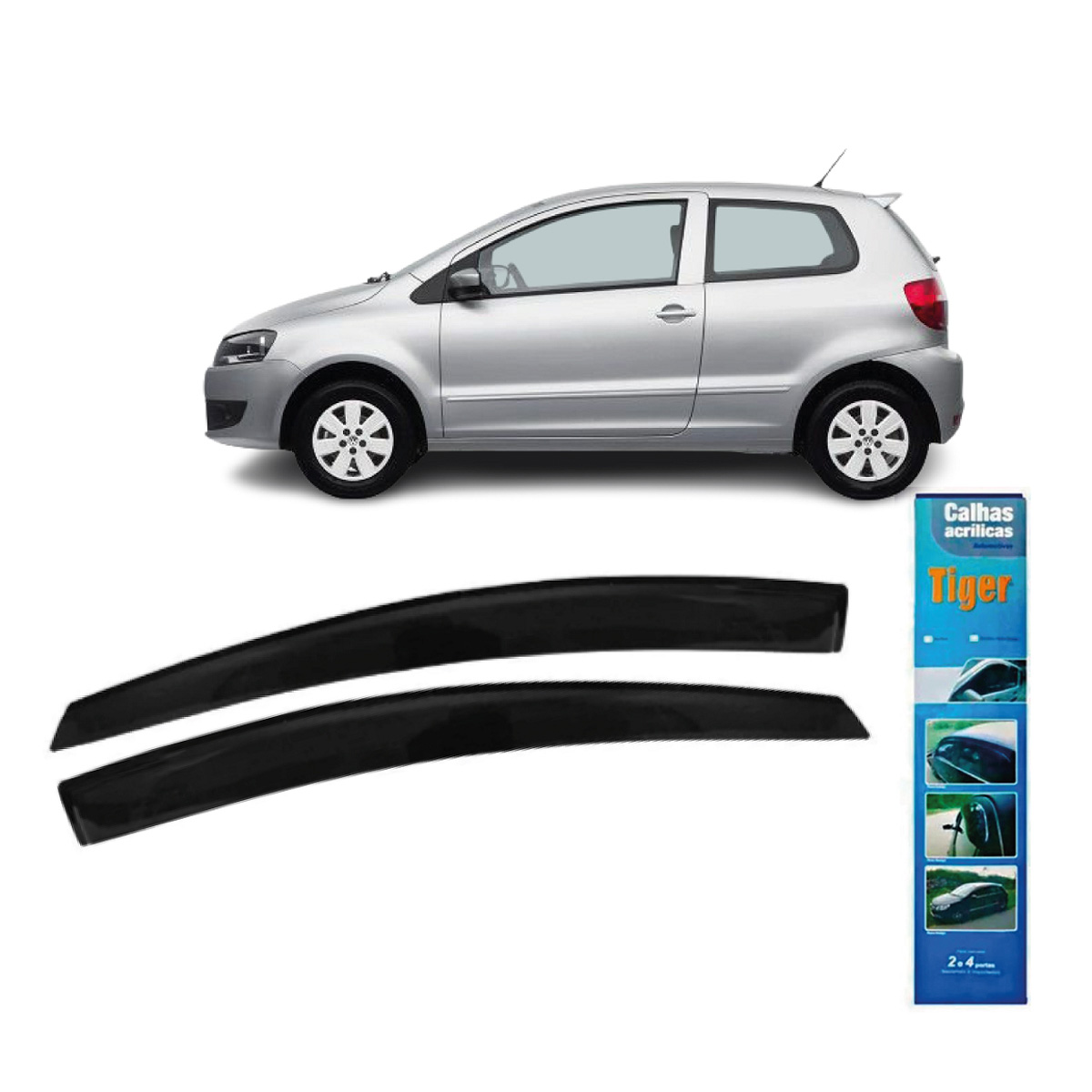 Calha de Chuva, tambem conhecida como defletor, garante um conforto aos passageiros, principalmente em dias chuvosos, onde permite a entrada de ar externo, evitando o embacamento dos vidros sem entrada de agua no interior do carro. Produto de facil instalacao, acompanha fita dupla face 3M.