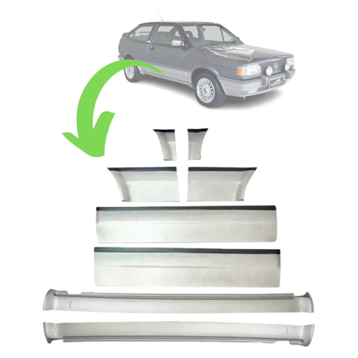 GOL 1993 A 1994 GTI 2 PORTAS LARGO CINZA COM PRATA (JOGO 8 PECAS)