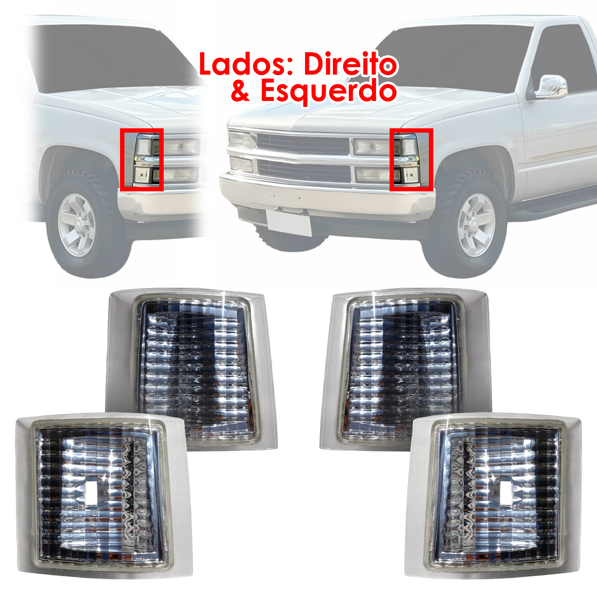 SILVERADO 1997 EM DIANTE CRISTAL LADO DIREITO+ESQUERDO INFERIOR/SUPERIOR (PARTE QUE VAI AO LADO DO FAROL) (KIT COMPLETO COM 2 LANTERNAS + 2 REFLETORES)