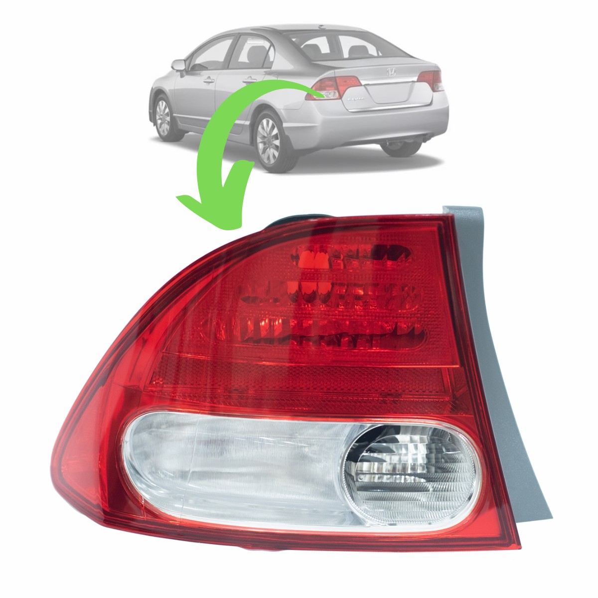 NEW CIVIC 2007 A 2011 BICOLOR LADO ESQUERDO CANTO ABA CINZA (VEM COM SOQUETE E LAMPADAS)