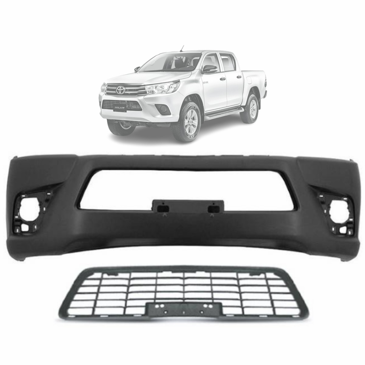 HILUX PICK-UP CABINE DUPLA 2015 A 2018 PRETO LISO SEM TELA CENTRAL E COM OU SEM FAROL MILHA (QUANDO FOR COMPRAR NOVAMENTE DESTE PARACHOQUE, VAI TER QUE CONFERIR SE ELE ESTA VINDO LISO OU TEXTURIZADO, COM OU SEM TELA)