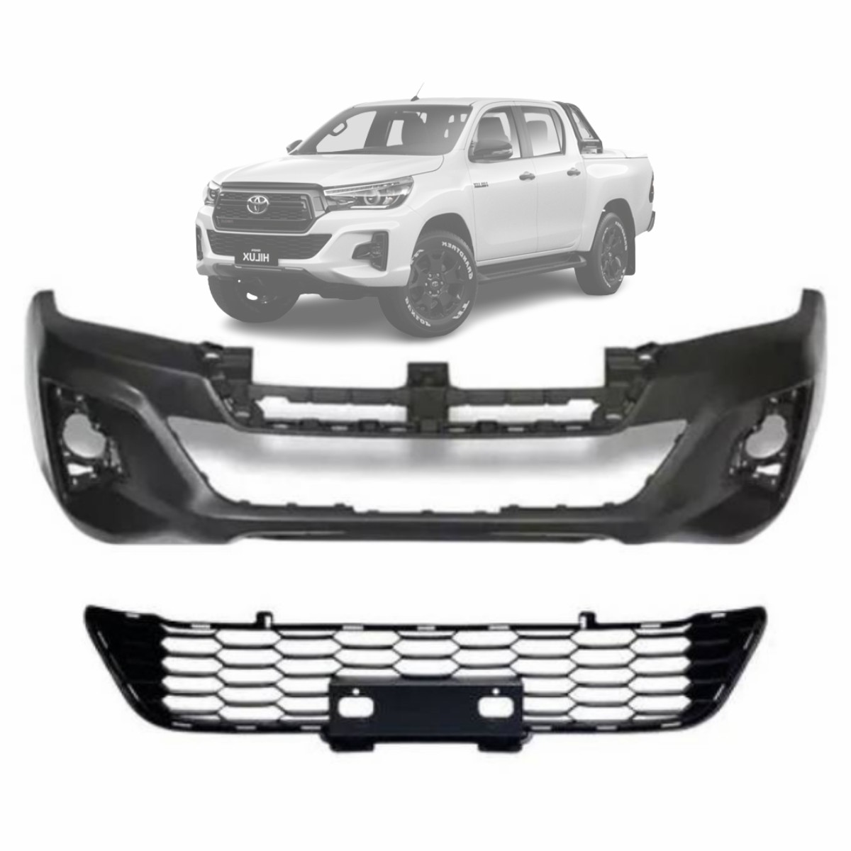 HILUX PICK-UP 2018 A 2020 PRETO LISO COM TELA INFERIOR CENTRAL (SEM FURO DE APLIQUE)