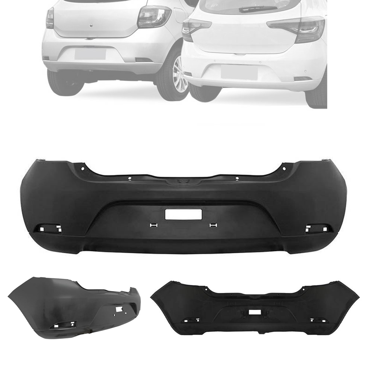 SANDERO 2014 A 2019 PRETO LISO (COM 2 FUROS DE LANTERNA DE PLACA)