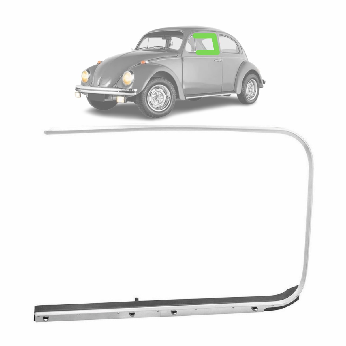 PESTANA EXTERNA DIANTEIRA FUSCA LADO ESQUERDO (FRISO CROMADO COM BORRACHA) (MODELO ORIGINAL – CROMO MELHOR)