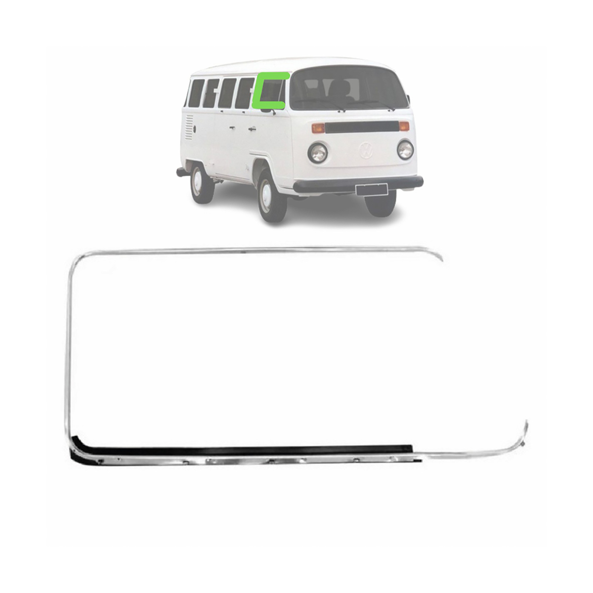 PESTANA EXTERNA DIANTEIRA KOMBI 1976 ATE 2005 LADO DIREITO (FRISO CROMADO COM BORRACHA) (MODELO ORIGINAL – CROMO MELHOR)